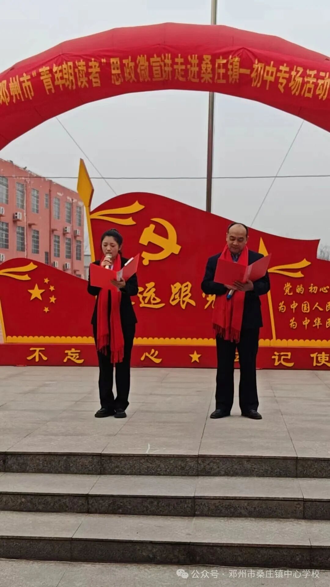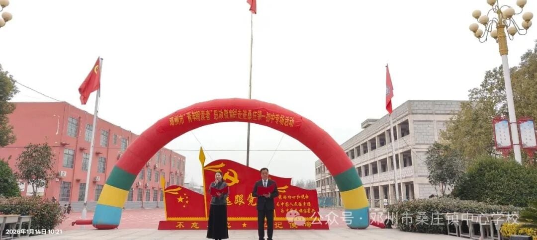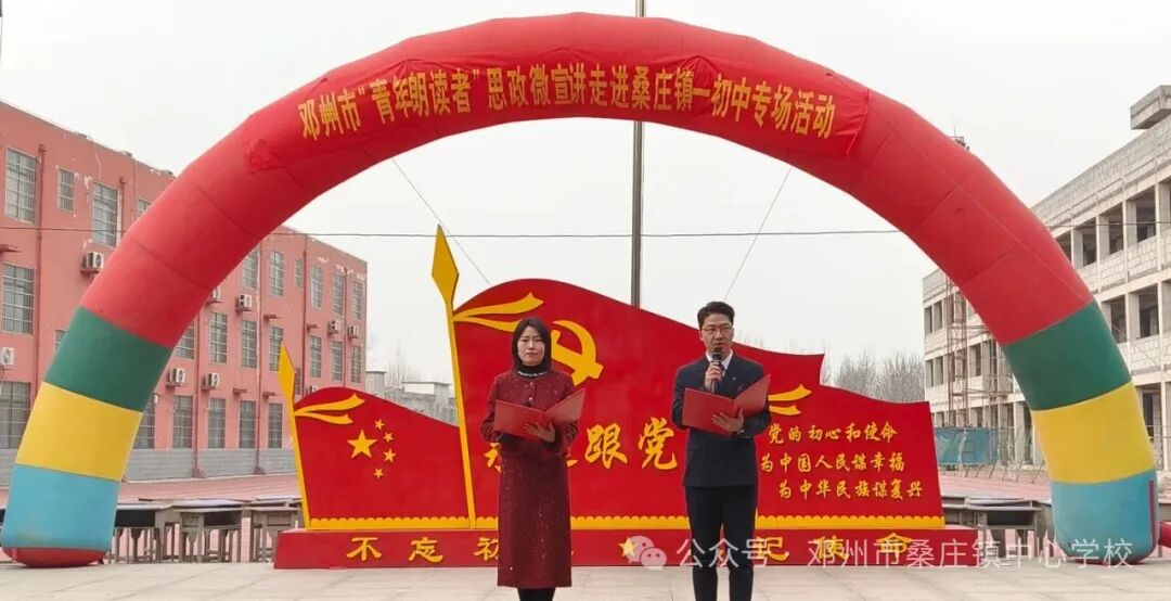 声动穰原,诗启华章。1月14日,邓州市“青年朗读者”思政微宣讲活动在桑庄镇一初中党建广场举行。共青团邓州市委书记、市青联主席、市少工委主任周娟,邓州市教体局党组副书记、副局长李秀清,桑庄镇副镇长祁红俊,邓州编外雷锋团副团长孙天训,以及市教体局党建办、教育团工委、花洲实验小学、桑庄镇中心校、豫明眼科等单位负责人出席活动,桑庄镇一初中全体师生共同参与活动。以青春之声传递信仰力量,以思政宣讲厚植家国情怀。