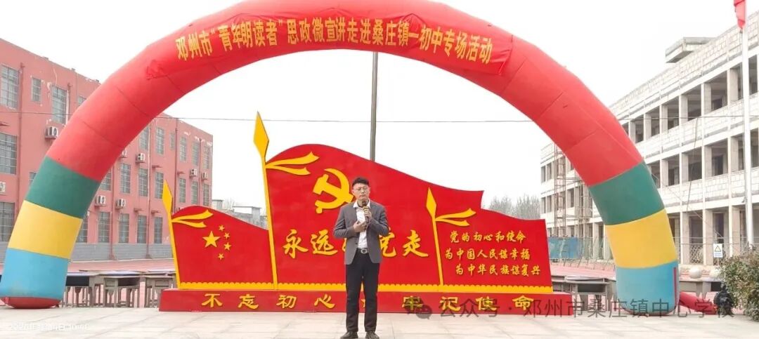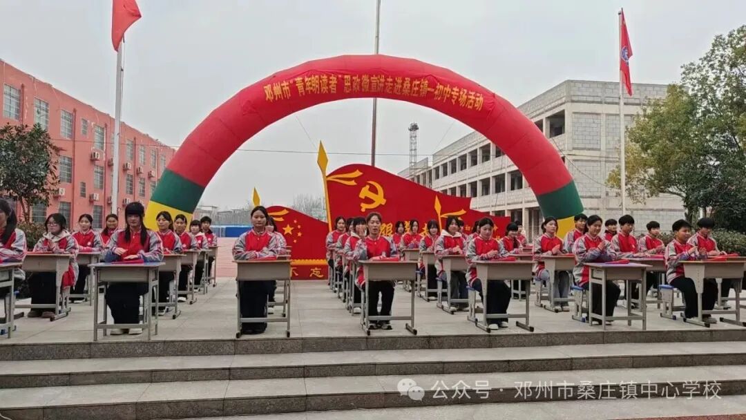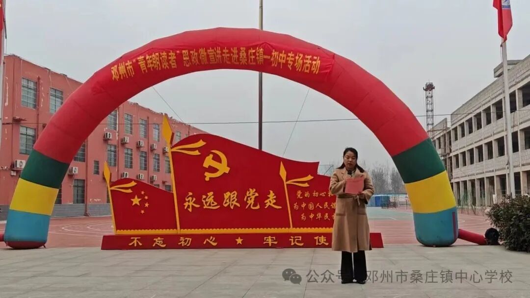 本次活动由共青团邓州市委、市教育体育局、市青年联合会主办,桑庄镇中心校、桑庄镇一初中承办,市“青年朗读者”宣讲小分队协办,是邓州市“青年朗读者”思政微宣讲走进校园系列活动的第三站。活动以“传承红色基因、坚定文化自信”为主基调,通过“思政+朗诵+文艺”宣讲模式,以声传情,以文铸魂,让思政教育走出课堂、贴近学生,打造沉浸式、体验式的思政育人模式,为青少年学生送上一场兼具思想深度与青春活力的精神盛宴。