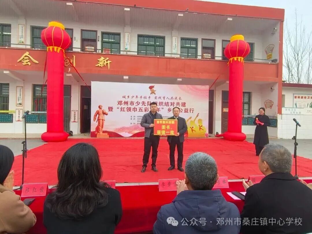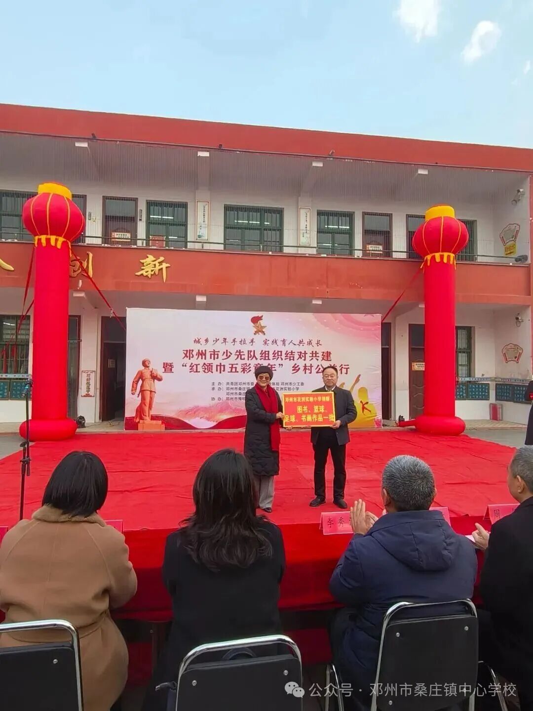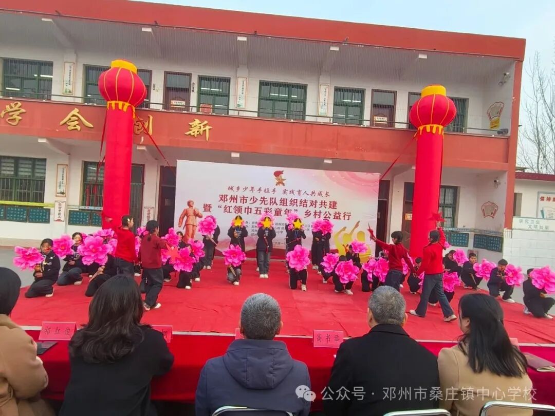 手拉手学雷锋 心连心育新人--邓州市少先队组织结对共建暨“红领巾五彩童年”乡村公益行活动在桑庄镇中心小学启动